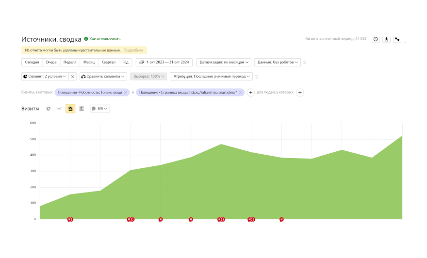 Трафик из поисковых систем в блог с 01.10.2023 по 01.10.2024