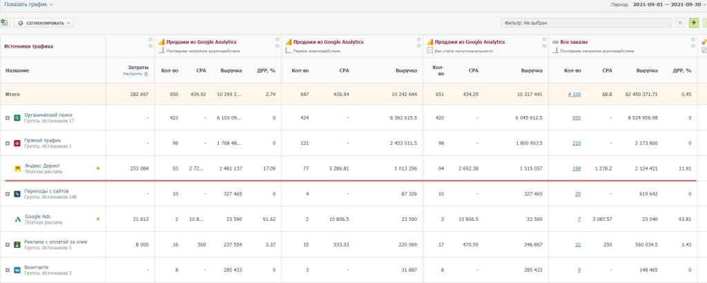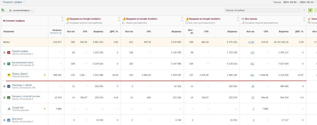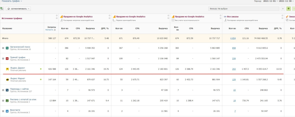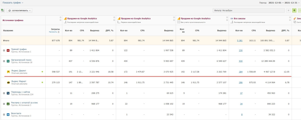 Первые результаты: Сначала мы запускали только те направления и типы кампаний, в которых были уверены. В августе начинали с небольшого бюджета, в сентябре его удвоили. Далее перешли к следующему этапу - внедрение и тестирование рекламных кампаний для менее эффективных категорий и разделов. Ниже представлены скриншоты за период октябрь-декабрь 2021 года.