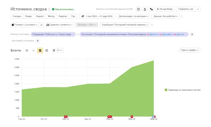 Увеличение объема трафика в 2 раза без учета брендовых запросов