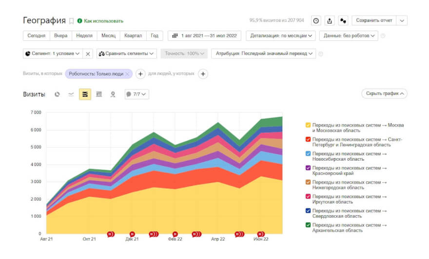 Динамика трафика за 1 год работ по продвижению с августа 2021 по июль 2022