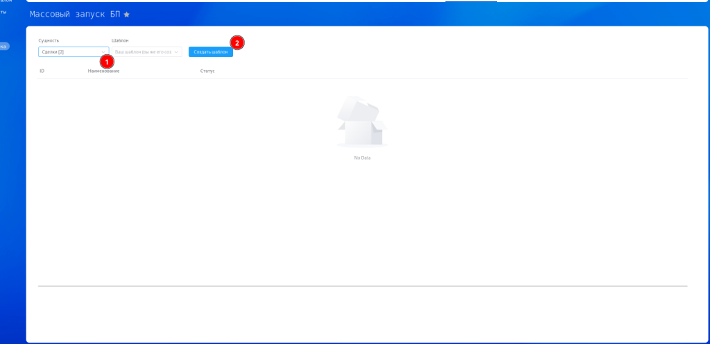 После сохранения шаблон должен появится в списке. Далее, нажмите кнопку "Получить строки" — это действие не запускает бизнес-процесс, а только формирует таблицу для дальнейшего отображения.