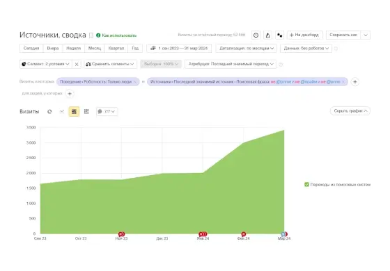 Рост видимости по ключевым запросам для точных продаж “горячему” сегменту целевой аудитории бренда.